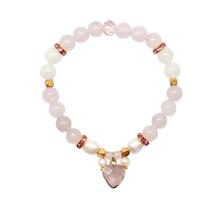 Lisa Pollock Crystal Heart Charm Bracelet - Rose Quartz