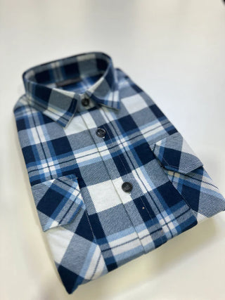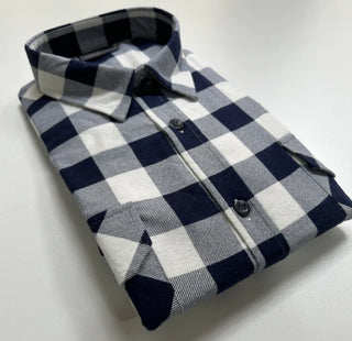 Pilgrim Half Button Flannelette Shirt - Navy & White