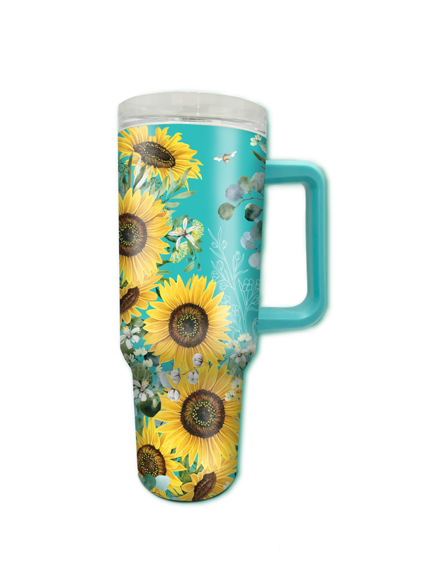 This is Lisa Pollock NEW double walled stainless steel “Mugmazing” Travel Mug. With a huge 1.2L capacity they will quench your thirst from day until dark. These beauties are easy to carry with their sturdy handle and will keep your favourite beverage super cold or hot. Perfect for camping, parties, barbeques, and anywhere where you need to keep hydrated!