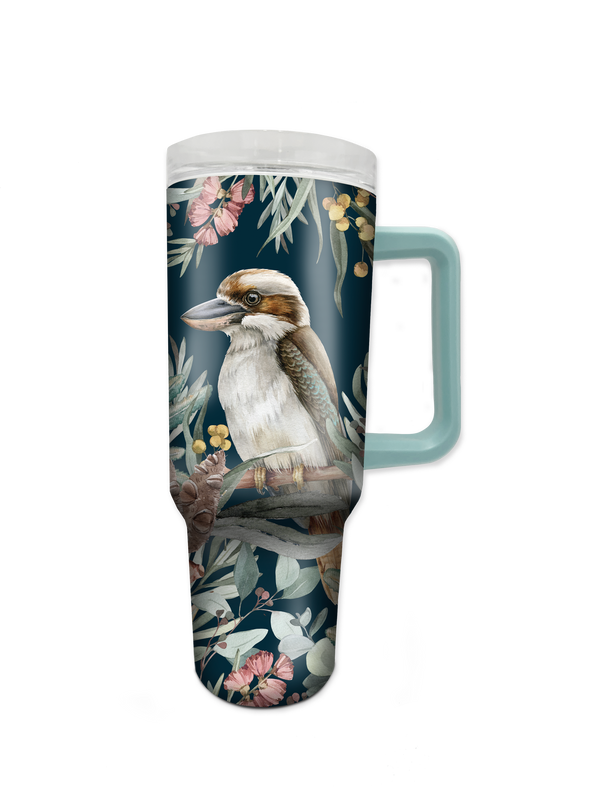 This is Lisa Pollock NEW double walled stainless steel “Mugmazing” Travel Mug. With a huge 1.2L capacity they will quench your thirst from day until dark. These beauties are easy to carry with their sturdy handle and will keep your favourite beverage super cold or hot. Perfect for camping, parties, barbeques, and anywhere where you need to keep hydrated!