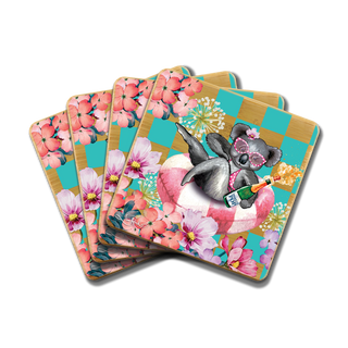 Lisa Pollock Bamboo Coaster Set - Koala Pool Party