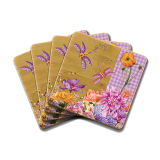 Lisa Pollock Bamboo Coaster Set - Dragonfly Fields