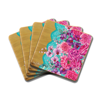 Lisa Pollock Bamboo Coaster Set - Rose Bouquet