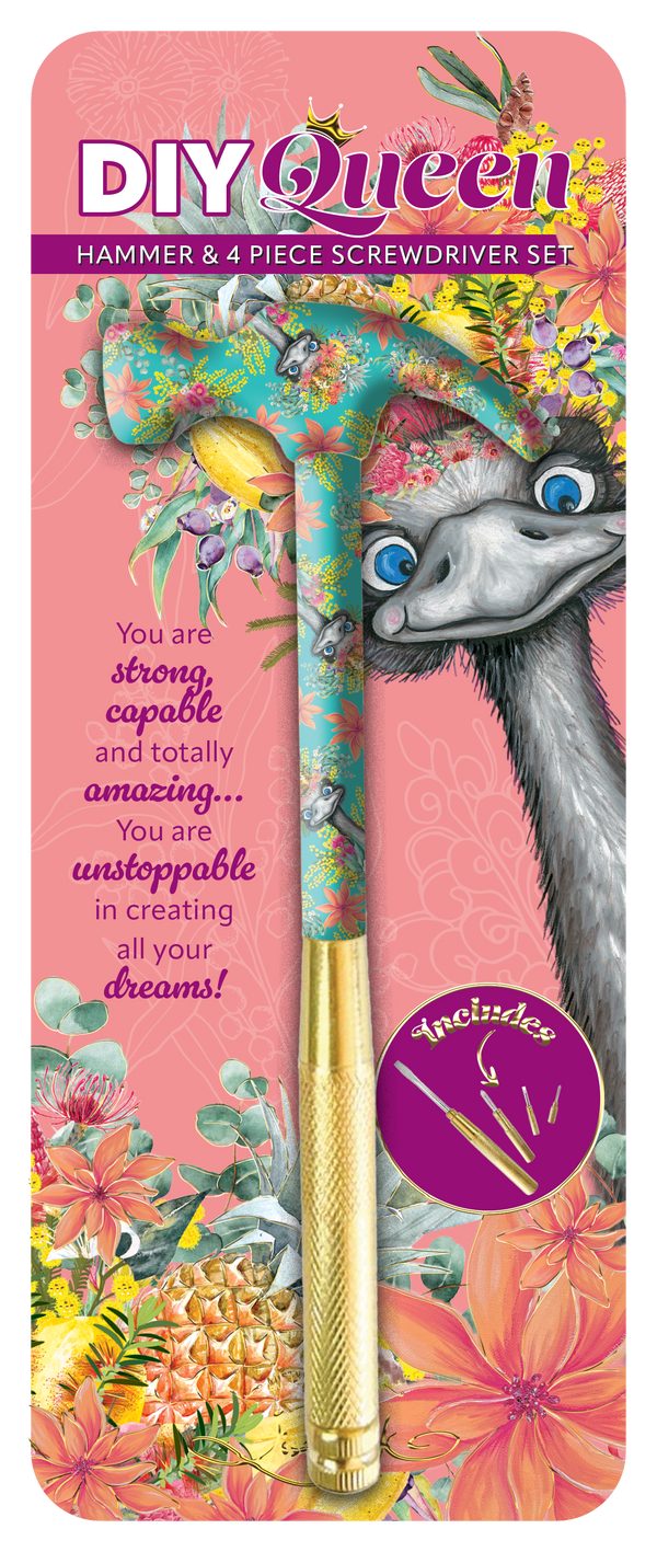 Get ready to tackle any DIY project with the Lisa Pollock Hammer and 4 Piece Screwdriver Set! This unique set features a hammer and four screwdrivers cleverly hidden inside the handle for ultimate convenience and portability.