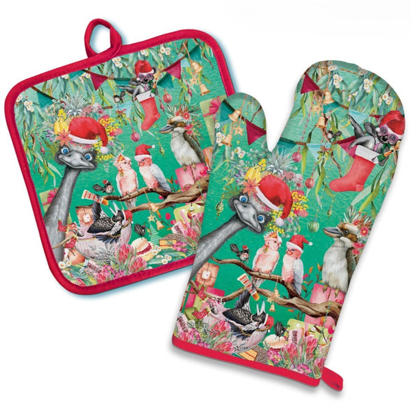 Lisa Pollock - Oven Mitt Pot Holder Set - Christmas Capers