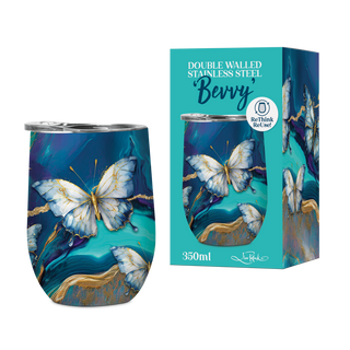Double Walled Stainless Steel Bevvy - Tranquil Butterflies