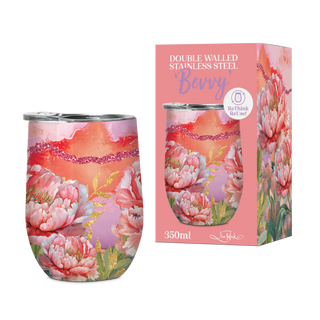 Double Walled Stainless Steel Bevvy - Coral Peony