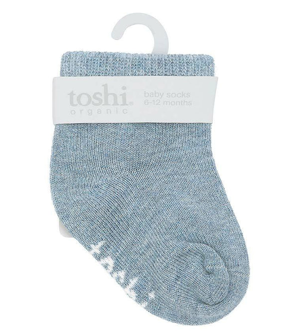 Toshi presents a beautifully curated collection of organic cotton baby socks. Crafting of the socks evolves from a blend of finely textured organic cotton melange yarn. Our cotton yarn is certified organic and this ensures Toshi socks are gentle on delicate baby feet, as well as our precious environment.