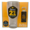 Finally, the perfect way to get the party started: The 21 Beer Glass & Bottle Opener Set! Perfect for your beer-loving 21 year old friends. Now you can open all kinds of bottles with ease and just one set! This is the ultimate party accessory, so "bottoms up!"