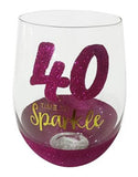 Cheers to the big Four-Oh-in Fuchsia-style! Toast to the years with this 40 Sparkle Fuchsia Stemless Wine Glass, made for the occasions when it's time to pop the bubbly and celebrate! Shine in style with a one-of-a-kind 40th birthday sparkle glass. Happy sipping and sparkle on!