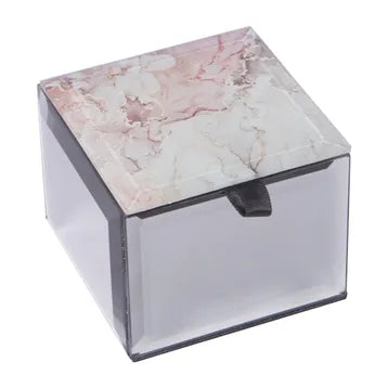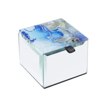 A cute box to hold your special trinkets. Made from mirror glass with a patterned top.