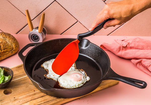 Chopula is an award-winning spatula that is not only thin and flexible for flipping from the front, but also incredibly strong for chopping on its side. Great for separating minced meat or eggs in a pan, flipping pancakes and serving. Chopula’s clever handle design also lifts its head up off your kitchen bench when you put it down.