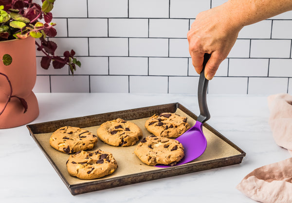 Flexy and you know it - Chopula’s super flexible head slides easily under food for a clean lift and flip that keeps even the most delicate food in one piece.