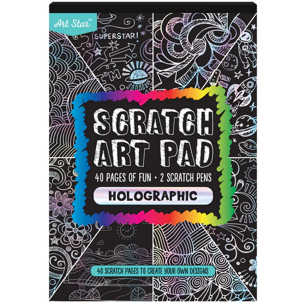 Discover the magic of the Art Star A5 Scratch Art Pad – Holographic! Scratch away the black surface to reveal dazzling holographic designs beneath. Compact and portable, it’s perfect for on-the-go creativity, crafts, or gifts. Ideal for all ages, this pad transforms simple sketches into mesmerizing masterpieces.
