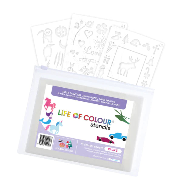 - Decorate any surface with these amazing stencils. Perfect for school work, journaling, rock painting, wood slice painting and more.