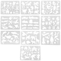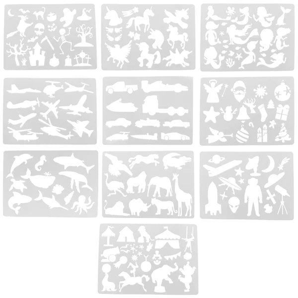 - Pack of 10 stencil sheets. Reusable, durable plastic with rounded corners.