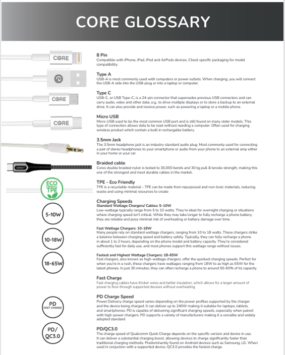 - Eco-friendly TPE cable with ABS housing for strength and durability