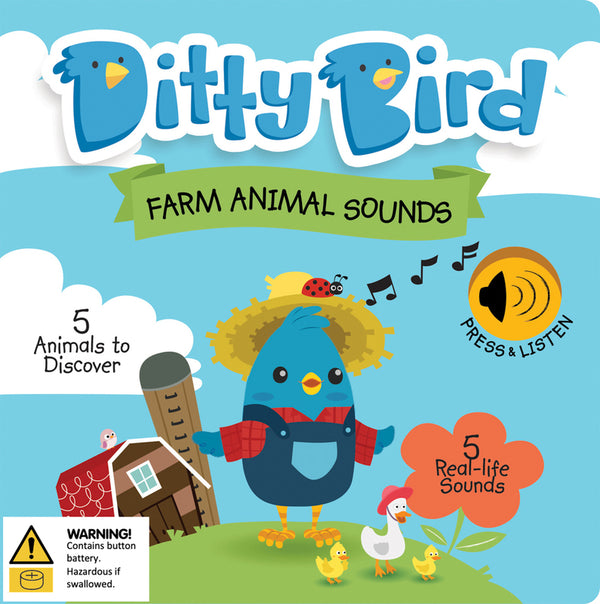 Join Ditty Bird as he explores the farm and learns about all the different sounds the animals make. What sound does Robby the Pig make? Touch the sound button to hear the real-life sounds of each animal. Touch the button to turn the sound off. Also includes a fun farm animal song.