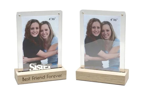 Celebrate your favorite Sister with our Dual View 4x6 Frame! This unique frame allows you to showcase two photos at once, making it perfect for displaying both a recent snapshot and a cherished memory. Give your sister a gift she'll love (and brag about) with this special frame.