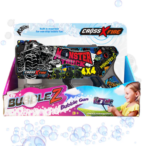 Rev up your bubble fun with the Kazaang BubbleZ-Monster Truck Bubble Gun! This cool and exciting toy is perfect for kids of all ages, providing endless hours of sensory play and outdoor entertainment. Designed with lit graphics and a monster truck theme, it's a showstopper at any playdate or party.