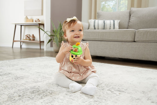 Take a smoothie break while your little one explores the Leapfrog Fruit Colours Learning Smoothie™! Learning is delicious with this cute, colourful cup. Swivel the straw to choose from five fruit flavours, and the cup will change colour to match—this smoothie is bananas! Meet Crystal the Cup plus five funny fruits like Sherry Strawberry and Oliver Orange who introduce themselves and their colours. The straw is also a teething toy for kids to nibble as they listen to fruit-themed sing-along songs and music in reggae, pop, punk rock and country styles. Shake up the toy smoothie cup to hear the bubble beads bounce.