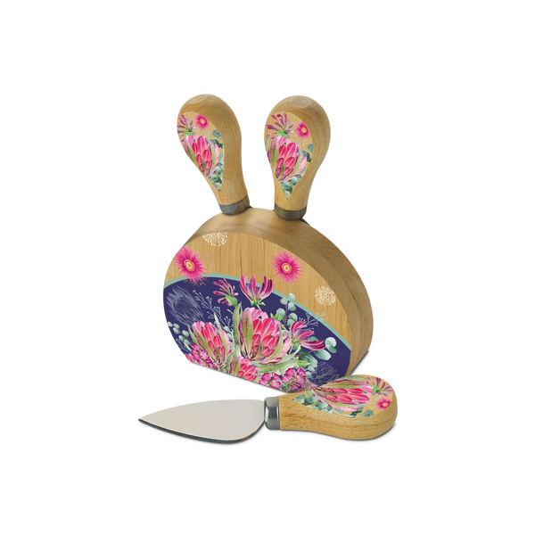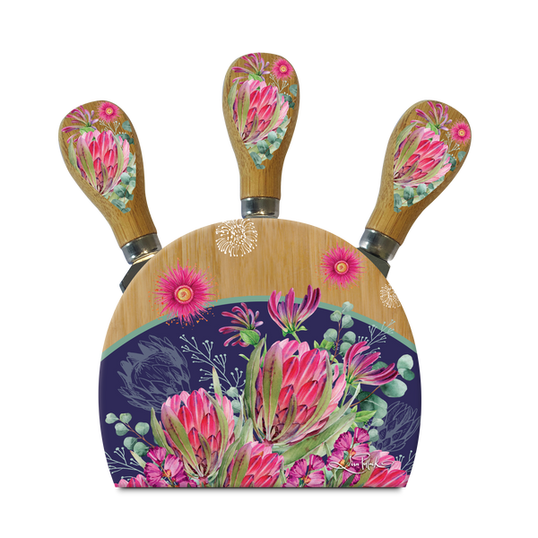 Made from Eco-friendly bamboo the block has magnets at the back to hold the 3 matching knives that come with it. Block and bamboo handles on knives are printed with Blush Beauty design.