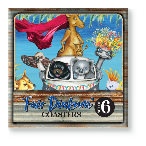 Lisa Pollock - Set of 6 Fair Dinkum Coasters - Priscilla