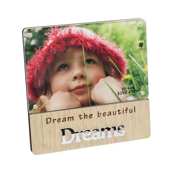 This frame has a wooden look bottom section, with a magnetic clear top to keep your precious photos safe and on display.
