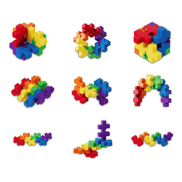 HEXEL is an engaging and vibrant fidget toy that consists of six interconnected Plus-Plus pieces linked together by a flexible cord.
