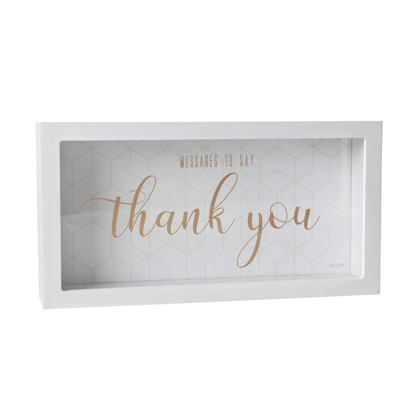 This Thank You Message Box from the Message Box collection is a beautiful keepsake for your special occasion. The Message Box collection is designed to collect well wishes and words of wisdom from guests at your event, to treasure forever. The messages you’ve collected will be held safely inside as a beautiful memento and reminder of those who shared it with you. Perfect for farewells, retirements, teachers, coaches or someone who deserves a special thank you. The Thank You Message Box is a unique and meaningful gift or a beautiful memento for you to add to your event.