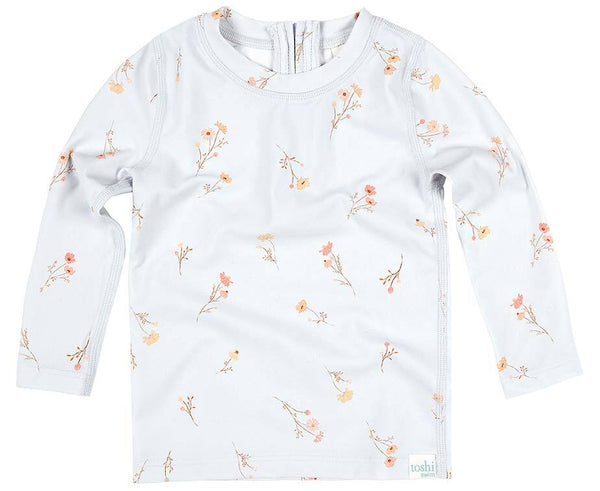 Toshi Swim Rashie Willow presents a classically minimal floral design of light and gently floating sprigs and petite blossoms.