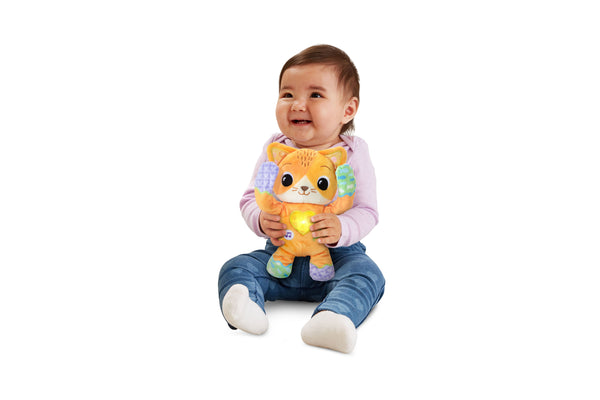 Press this cute kitty’s light up heart button to see a cute peek-a-boo surprise! Music button plays songs and melodies & leaf button plays soothing nature sounds!