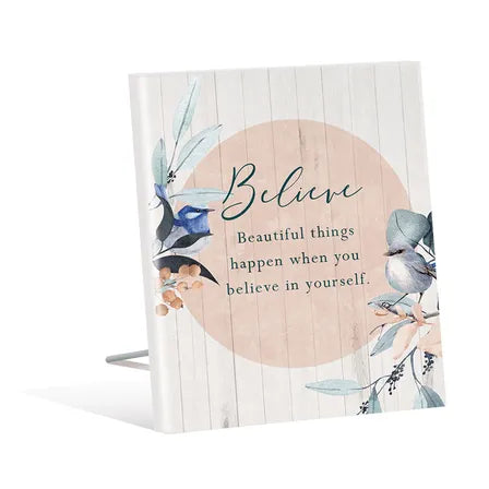 Six quotes to choose from, Believe, Love, Friendship, Family, House and Friend.