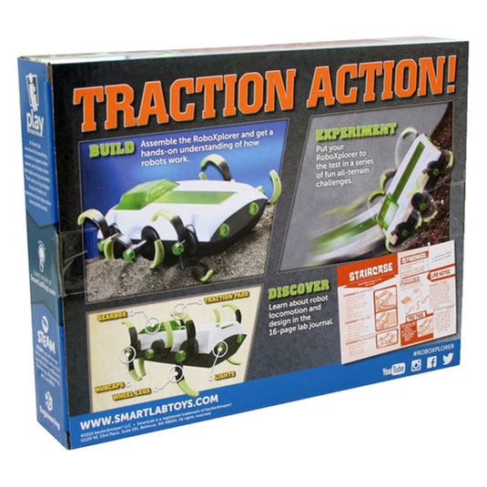 You Build It RoboXplorer. With RoboXplorer, kids build their very own multi-terrain robotic vehicle, complete with six S-shaped legs designed to conquer some of the toughest terrains, such as sand, rocks, and grass.